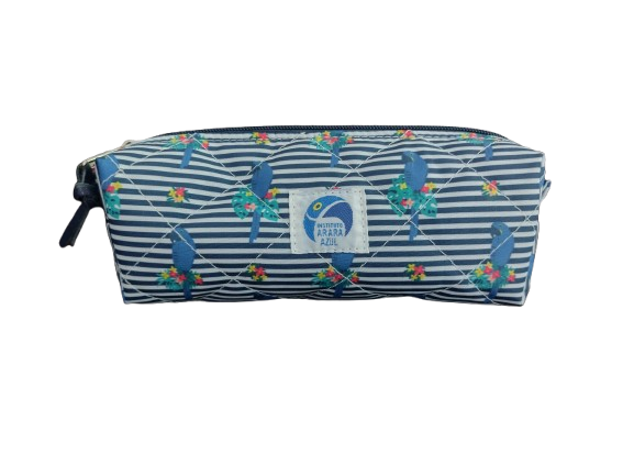 ESTOJO AZUL LISTRADO – ESTAMPA ARARA AZUL COM FLORES